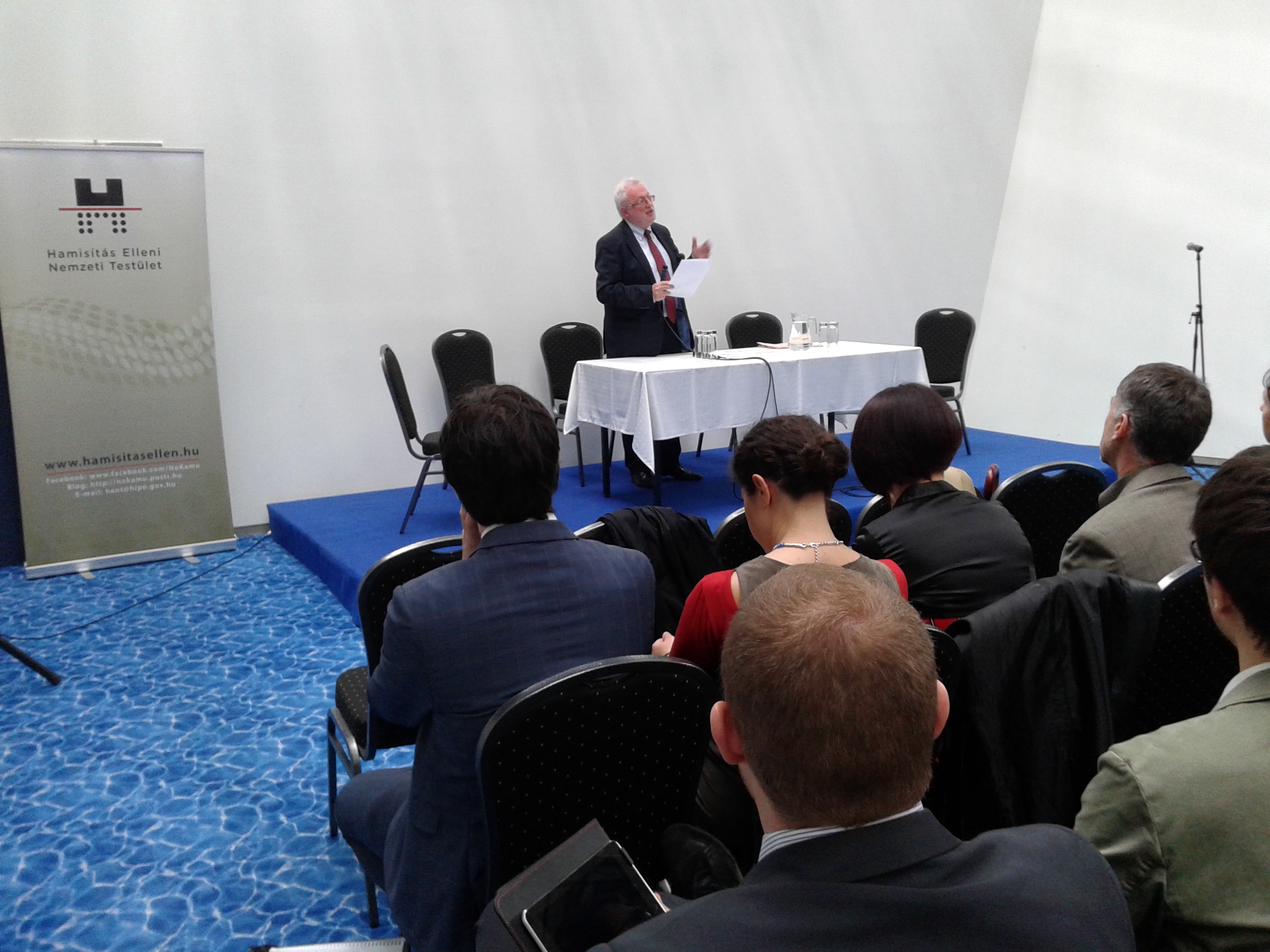 Köszöntő beszédében elmondta, hogy az utóbbi években kiemelkedő jelentőségűvé váltak a tömeges digitalizálás jogi és piaci problémái, az e-könyvek elterjedése kapcsán felmerülő jogértelmezési kérdések. Külön hangsúlyozta egyúttal az illegális letöltések elterjedtsége okozta károk elleni küzdelem fontosságát. Ebből a kiindulópontból jelezte, hogy e témakörök állnak a Hamisítás Elleni Nemzeti Testület és a Szellemi Tulajdon Nemzeti Hivatala szervezte konferencia fókuszában, hozzátéve: az új, kiegyensúlyozott válaszok és modellek kimunkálásának feladatában számos felelős hazai és külföldi intézmény és kiváló szakember működik együtt, melyet a panelbeszélgetések során elhangzottak is alátámasztanak majd.