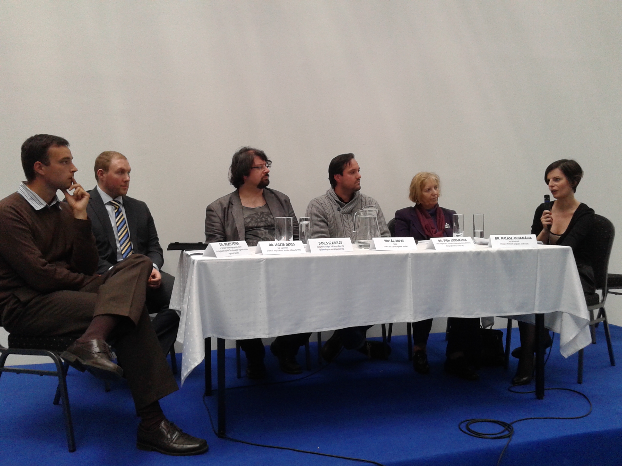 A szekciót Dr. Grad-Gyenge Anikó, a Károli Gáspár Egyetem Polgári Jogi és Római Jogi Tanszékének tanszékvezető-helyettese, a ProArt Szövetség a Szerzői Jogokért tanácsadója moderált, tagjai között a legnagyobb hazai közös jogkezelő szervezet főigazgatója, egy egyetemi könyvtár és az internetes tartalomszolgáltatók érdekében munkálkodó egyesület képviselője, valamint az SZTNH és a KIM egy-egy delegáltja vett részt.