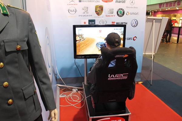 Idén a kiállításunk részét képezte egy NAV-os gépjármű és egy vezetéstechnikai szimulátor, melyen tesztelhető volt a hibás fék- és kormány működés is.